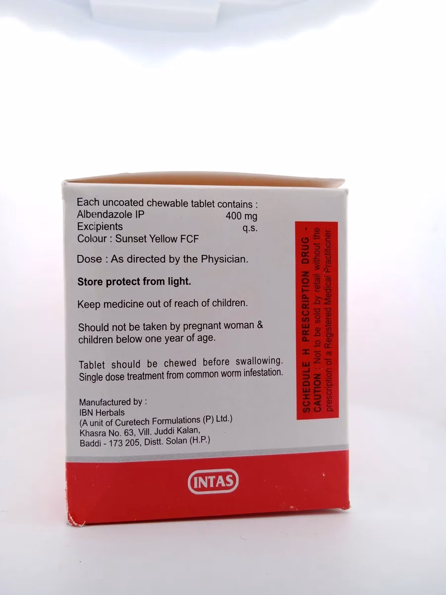 Store ABD 400mg (Albendazole 400mg) in a cool, dry place away from direct sunlight and moisture. Keep it out of reach of children and pets.