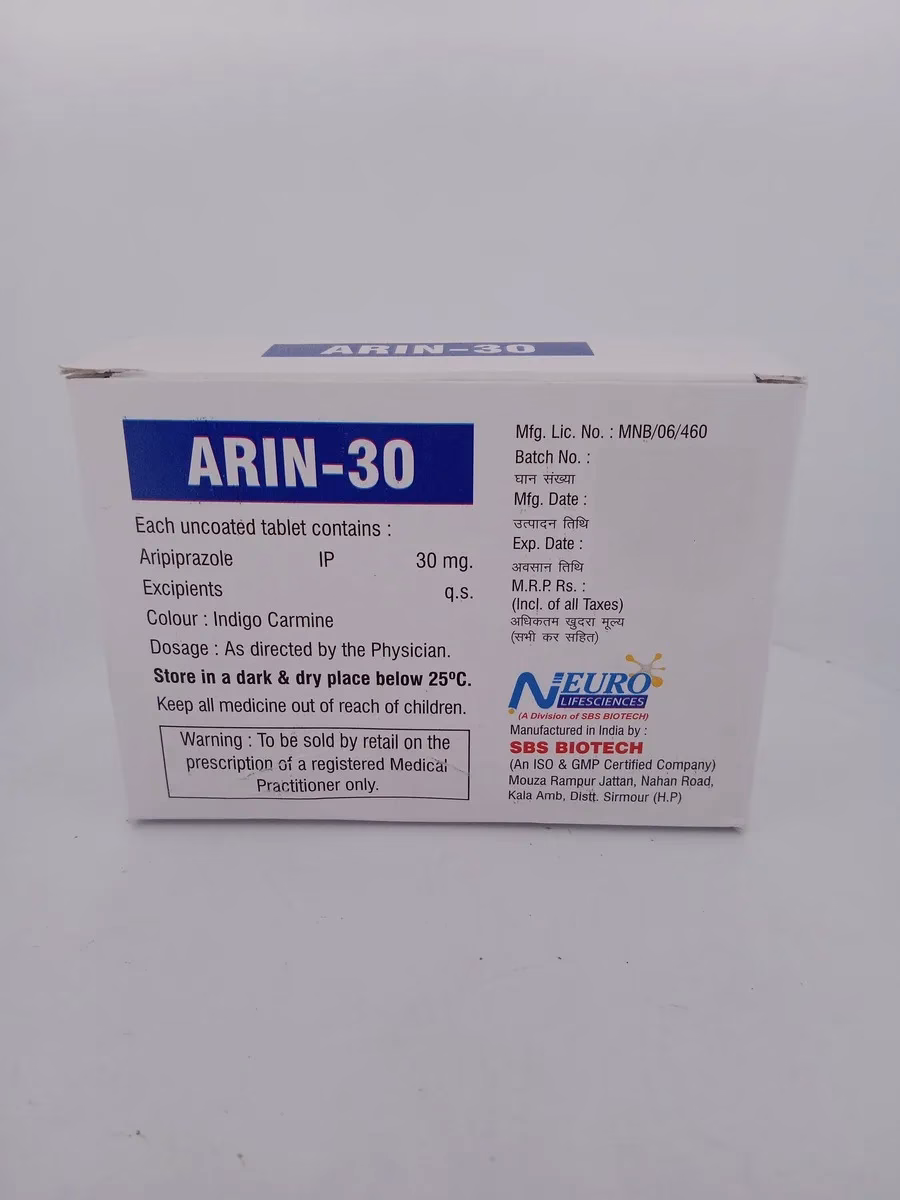 ARIN 30 MG works by modulating neurotransmitters in the brain, particularly dopamine and serotonin. This action helps balance mood and reduce symptoms of mania and psychosis, contributing to improved mental clarity and emotional stability.