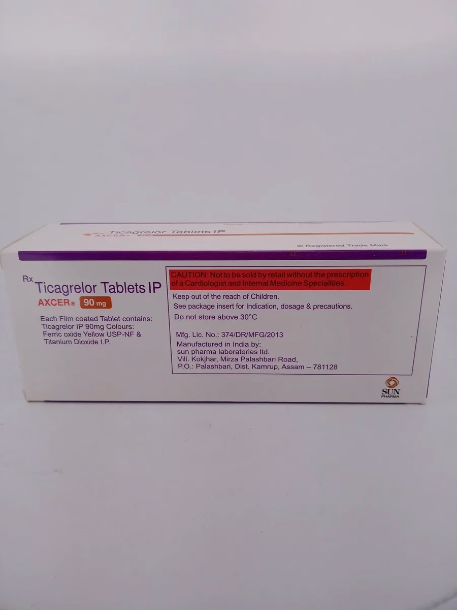 AXCER 90 MG works by inhibiting the P2Y12 receptor on platelets, which prevents platelet activation and aggregation. This action reduces the formation of blood clots, helping to prevent cardiovascular events such as heart attacks and strokes.