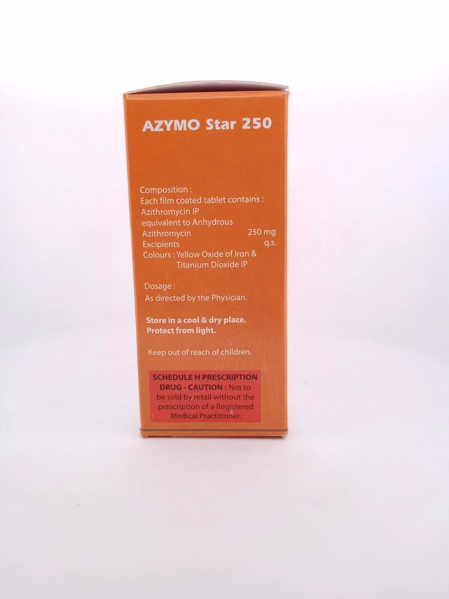 FAQs: Q: What is AZYMO STAR 250 MG used for? A: AZYMO STAR 250 MG is used to treat various bacterial infections, including respiratory tract infections, skin and soft tissue infections, and sexually transmitted diseases.