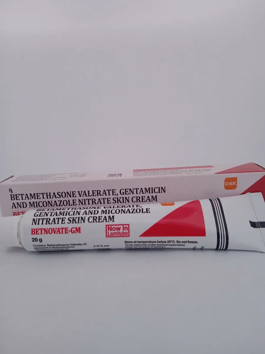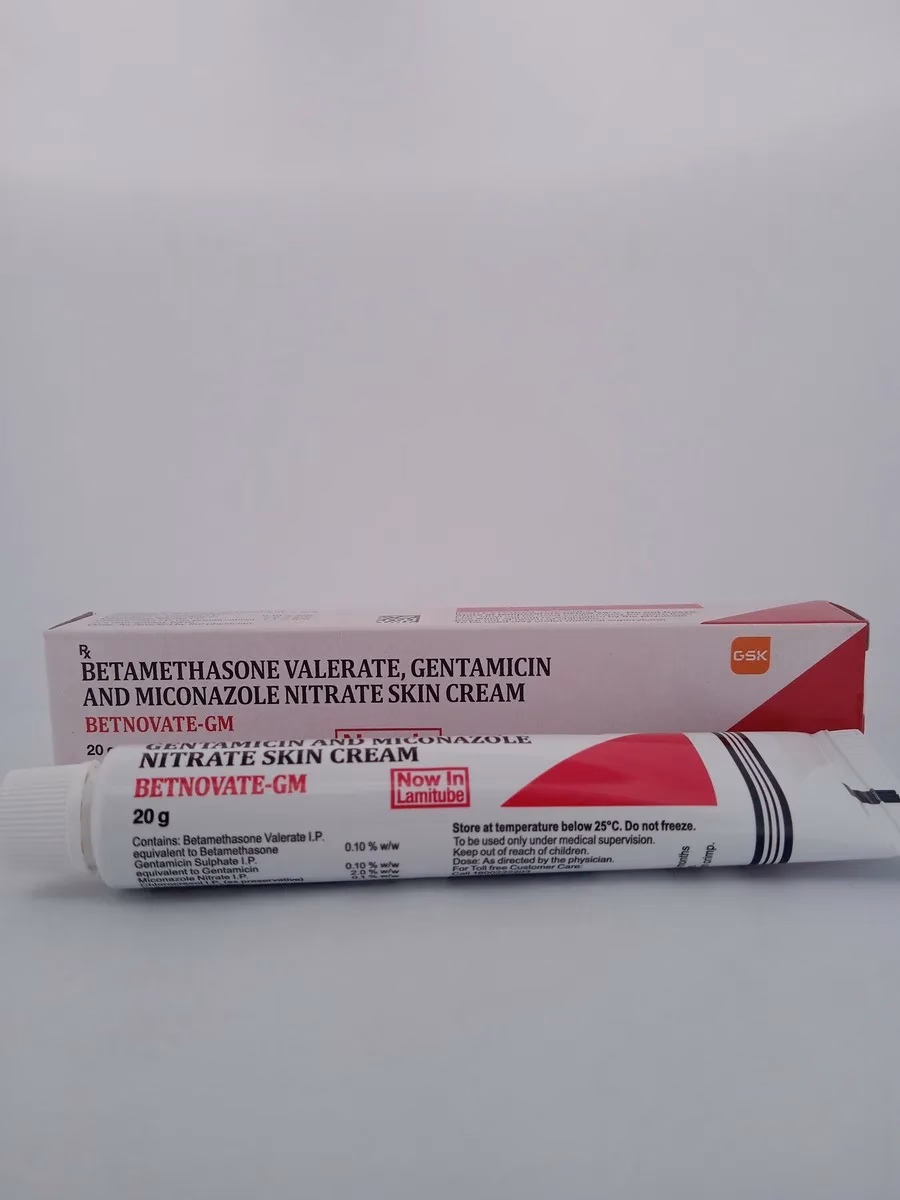 BETNOVATE-GM Cream offers a potent combination of Betamethasone, Gentamicin, and Miconazole to tackle inflammatory skin conditions and infections. This triple-action formula provides relief from itching, redness, and fungal infections, making it effective for managing eczema, dermatitis, and other skin disorders.