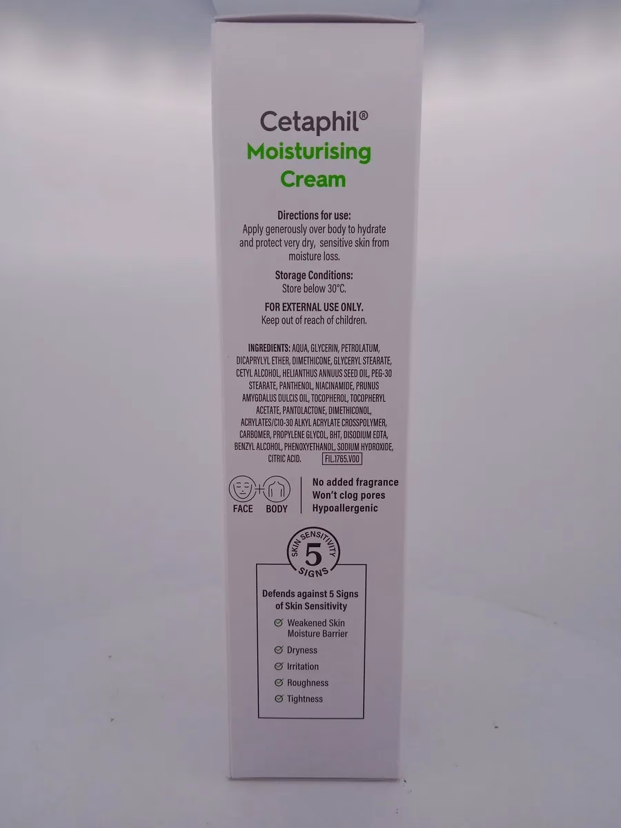 • Application: Apply CETAPHIL Moisturising Cream liberally to clean, dry skin as often as needed.
