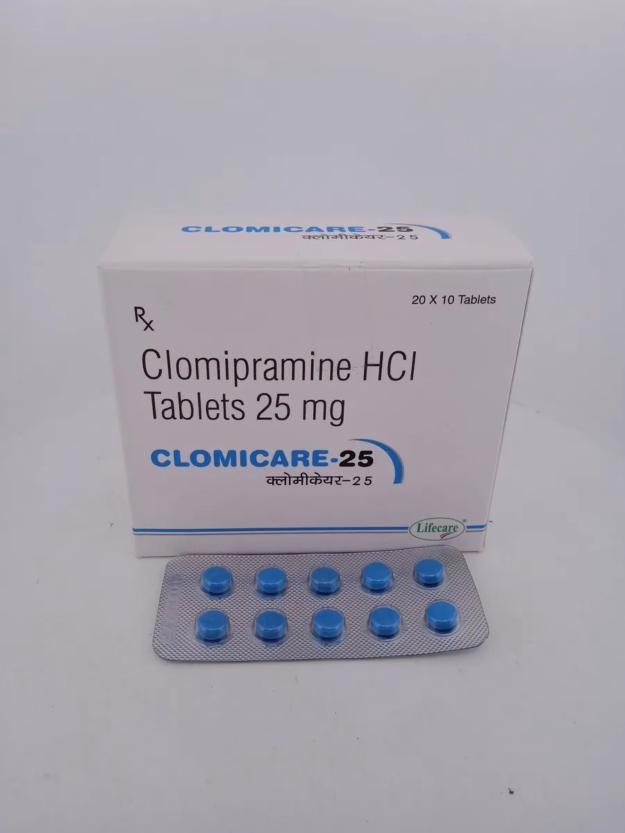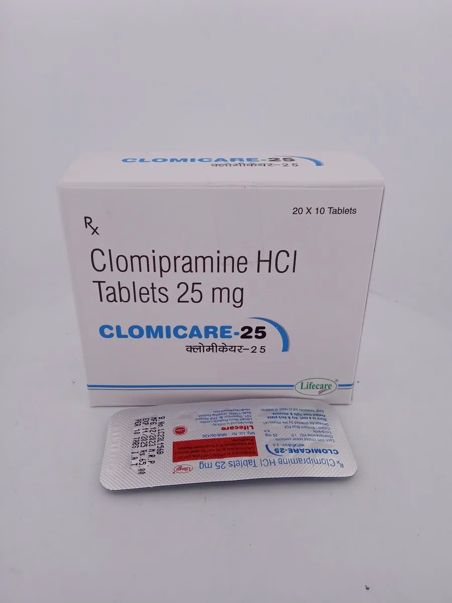 CLOMICARE 25 MG contains Clomipramine, a tricyclic antidepressant used for the treatment of depression and obsessive-compulsive disorder (OCD). By balancing neurotransmitters in the brain, it helps relieve symptoms of depression, anxiety, and compulsive behaviors associated with OCD.