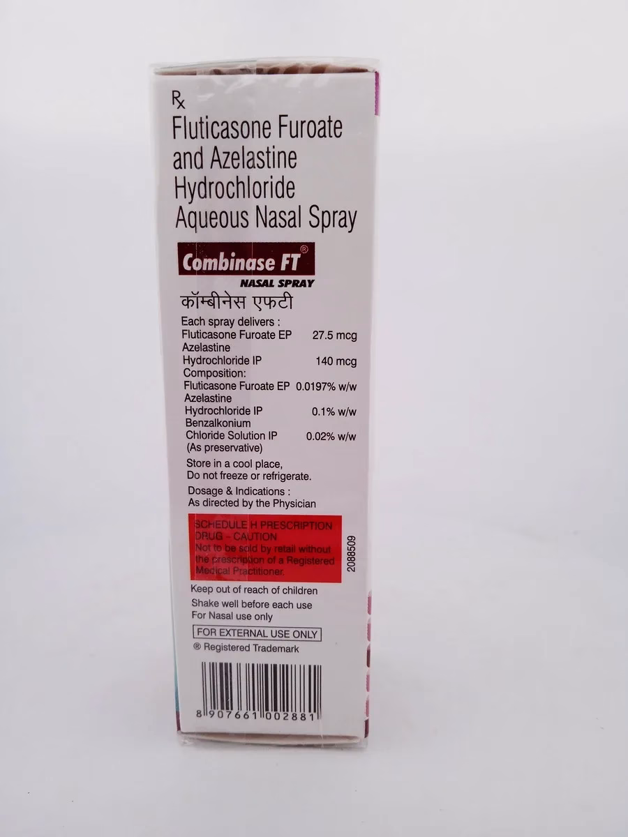 COMBINASE FT is a nasal spray combining Fluticasone Propionate and Azelastine. This advanced formulation offers dual-action relief from nasal congestion and allergy symptoms, providing effective and long-lasting comfort.