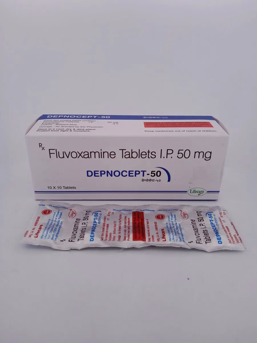 DEPNOCEPT 50 MG is a prescription medication that effectively treats depression and OCD by balancing chemicals in the brain. Its active ingredient, Fluvoxamine, belongs to a class of medications known as SSRIs that improve serotonin levels, helping to alleviate symptoms of mood disorders and compulsive behaviors. It is also used for anxiety-related disorders and can provide long-term symptom relief when taken regularly as prescribed.