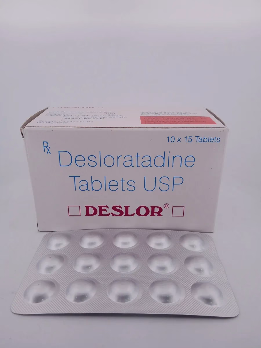 DESLOR 5 MG contains Desloratadine, an antihistamine that blocks the action of histamine, a substance in the body that causes allergic symptoms. It is effective in managing conditions such as allergic rhinitis, hay fever, and chronic idiopathic urticaria (hives). Unlike older antihistamines, it does not cause significant drowsiness, making it suitable for daytime use.