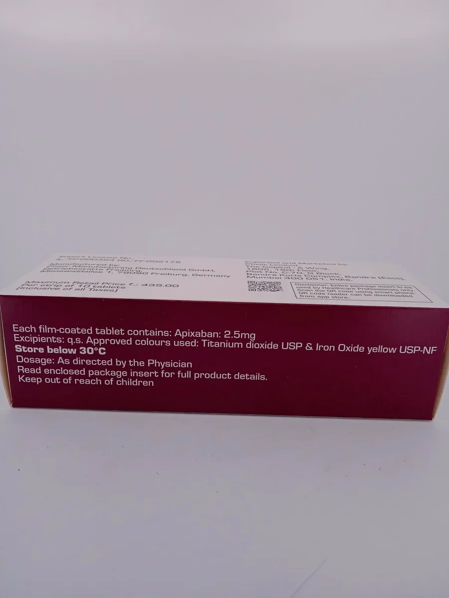 ELIQUIS 2.5 MG is effective in preventing blood clots and reducing the risk of stroke and other clot-related complications. It provides reliable anticoagulation, helping to manage conditions such as atrial fibrillation or deep vein thrombosis (DVT), and supports overall cardiovascular health.