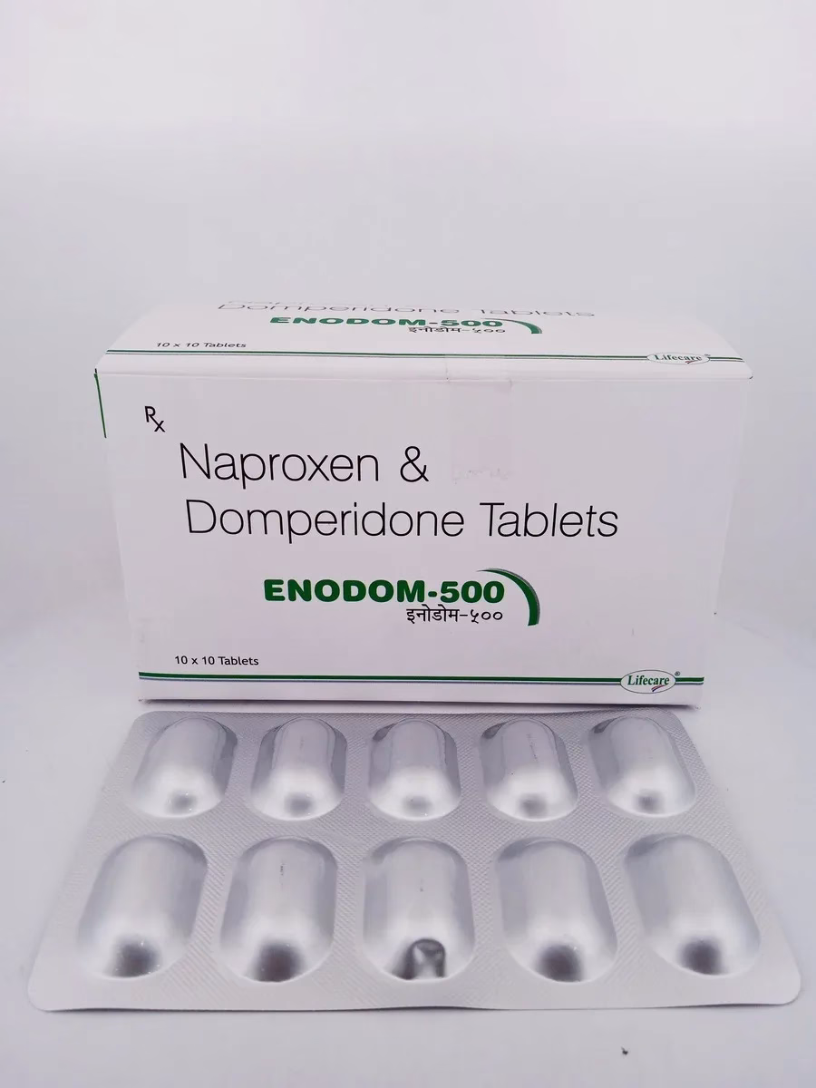 By addressing both the pain and nausea aspects of migraines, ENODOM 500 MG offers comprehensive relief, making it an ideal choice for individuals who suffer from these debilitating headaches. Naproxen provides anti-inflammatory and analgesic effects by inhibiting cyclooxygenase (COX) enzymes responsible for the production of prostaglandins, which cause inflammation and pain. Domperidone works by increasing the movement of the stomach and intestines, helping to relieve nausea.