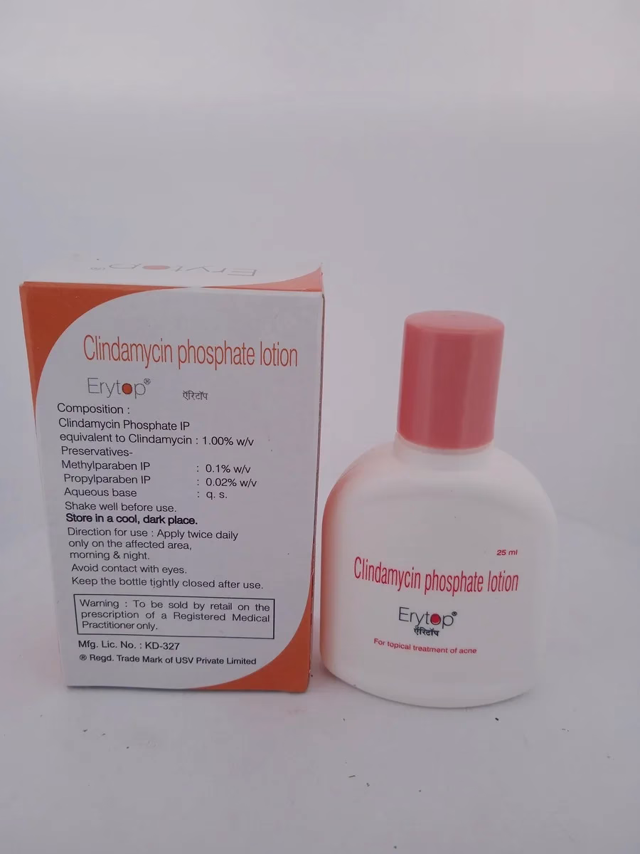 ERYTOP LOTION contains erythromycin, an antibiotic that works by inhibiting bacterial protein synthesis. This prevents the growth of bacteria responsible for infections and acne. By reducing bacterial load and inflammation, ERYTOP LOTION helps to clear up acne lesions and control bacterial infections. The lotion’s targeted application ensures that the active ingredient acts directly on the affected skin areas.