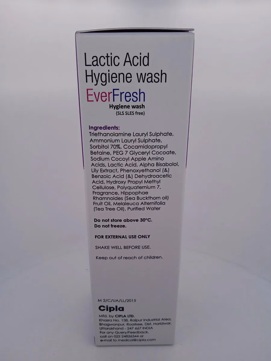 EVERFRESH HYGIENE WASH works by utilizing cleansing agents that bind to and lift away dirt, oil, and impurities from the skin’s surface. The formula is designed to cleanse thoroughly without disrupting the skin’s natural barrier. Its refreshing components provide a pleasant scent and invigorating sensation, contributing to an overall feeling of freshness.