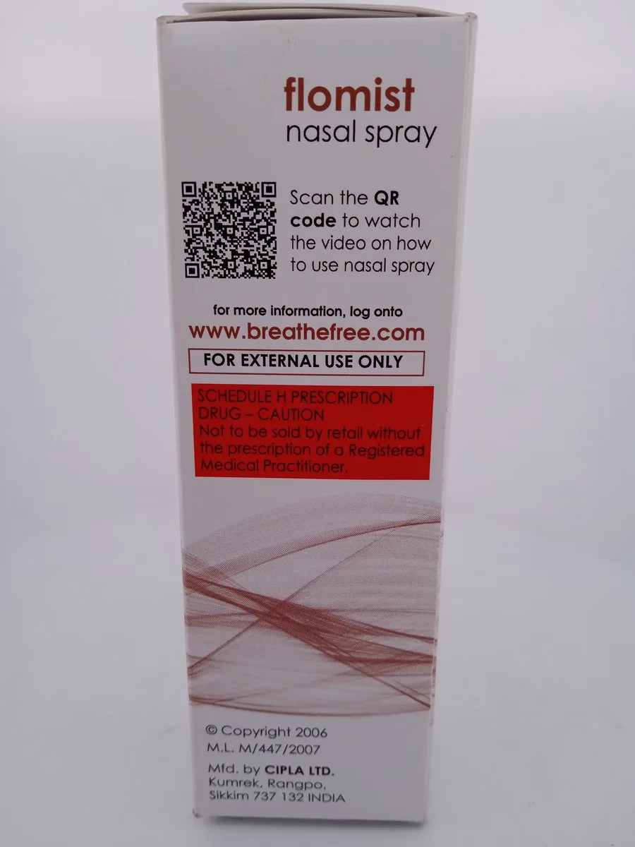 FLOMIST 50 MCG NASAL SPRAY is a prescription nasal spray designed to provide relief from allergy symptoms and nasal congestion. Containing fluticasone propionate, it helps reduce inflammation in the nasal passages, improving breathing and comfort.