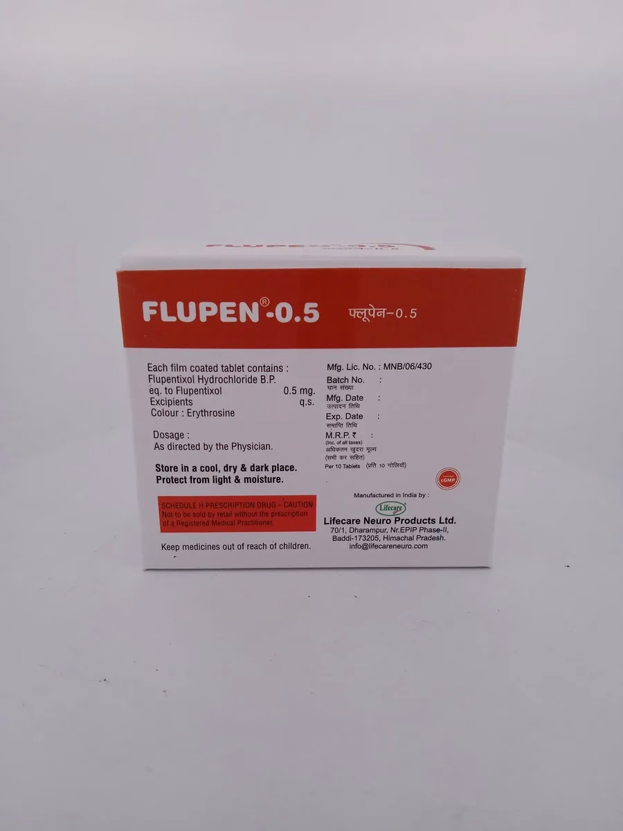 FLUPEN 0.5 MG primarily functions by blocking dopamine receptors in the brain, which helps to reduce psychotic symptoms and stabilize mood. By restoring balance to neurotransmitter activity, it addresses both the emotional and psychological aspects of mental health disorders.