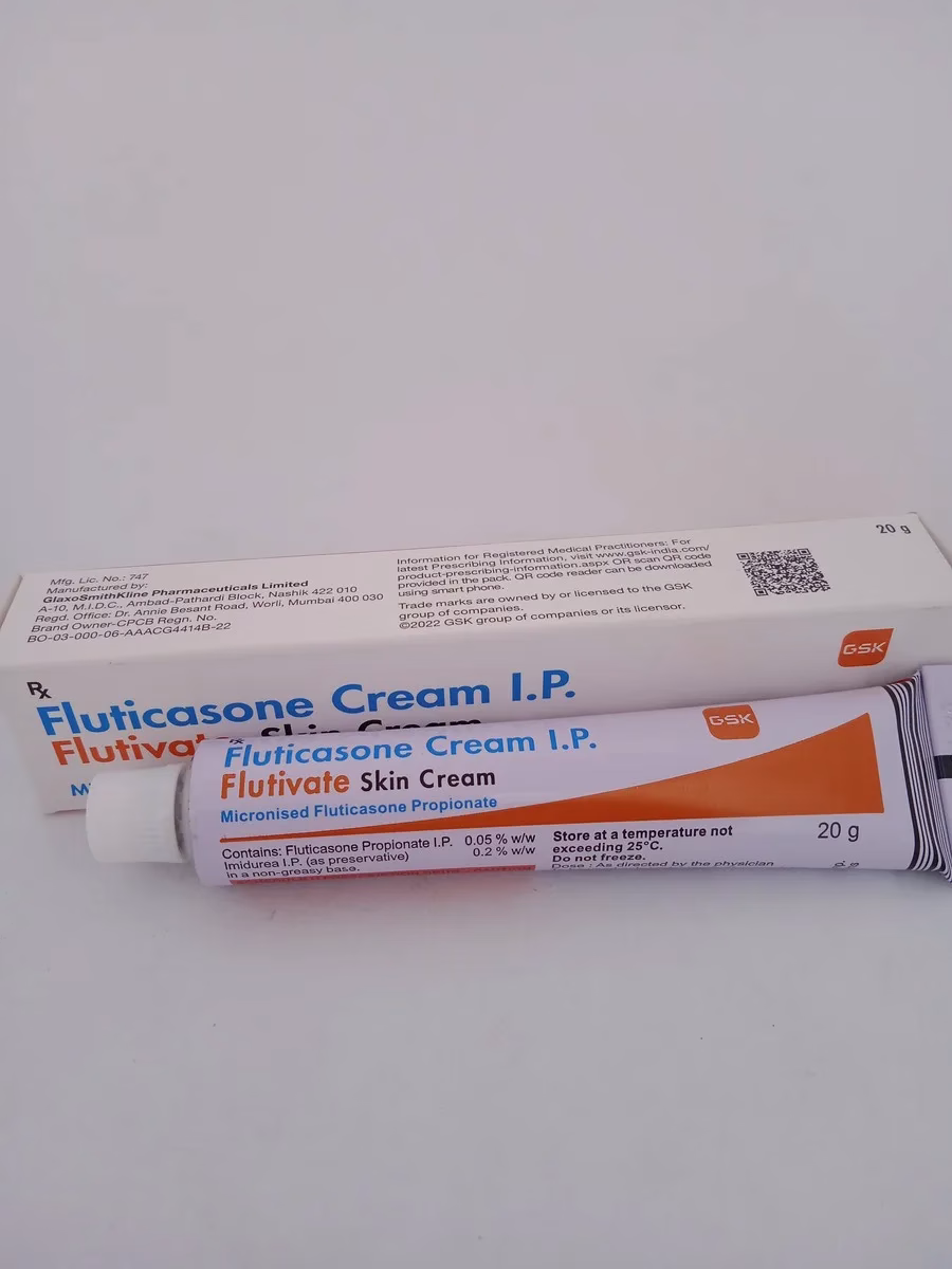 FLUTIVATE Skin Cream is a powerful topical treatment designed to manage and alleviate symptoms of inflammatory skin conditions such as eczema, psoriasis, and dermatitis. Formulated with fluticasone propionate, a corticosteroid known for its anti-inflammatory properties, this cream provides effective relief from redness, itching, and swelling.