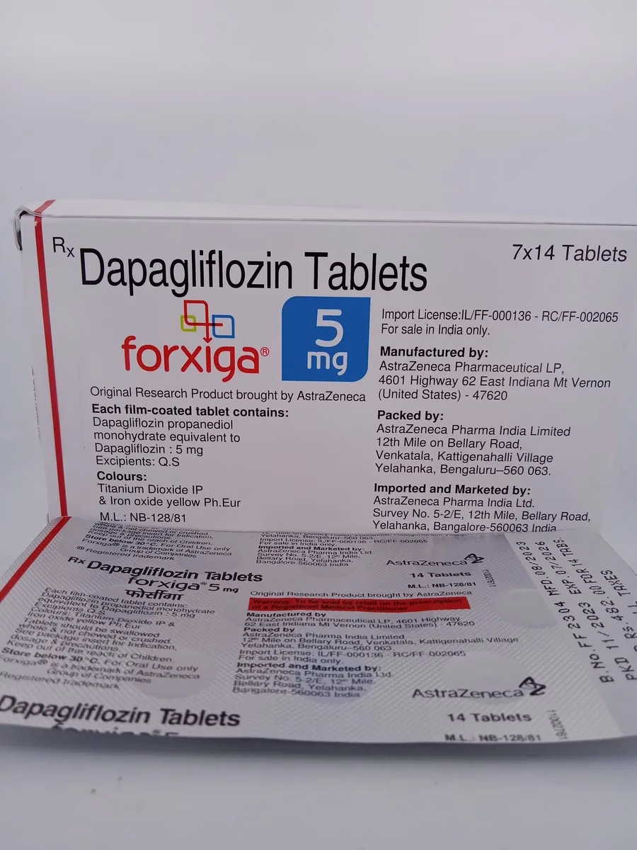 FORXIGA 5 MG contains Dapagliflozin, an SGLT2 inhibitor that helps manage blood glucose levels in individuals with type 2 diabetes. By blocking the sodium-glucose co-transporter 2 (SGLT2) in the kidneys, FORXIGA prevents glucose from being reabsorbed into the bloodstream and promotes its excretion in the urine. This helps to lower blood sugar levels and support better glycemic control.