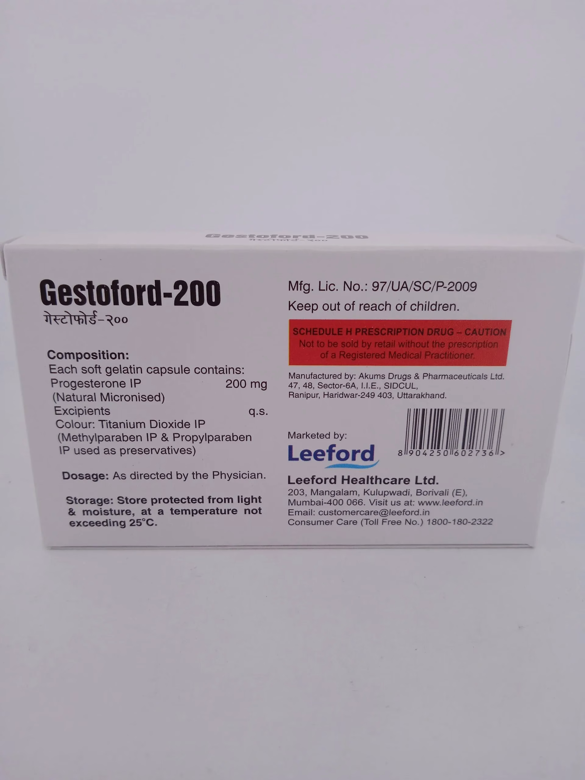GESTOFORD 200 MG provides supplemental progesterone, which is crucial for regulating the menstrual cycle and supporting pregnancy. This hormone plays a vital role in preparing the uterus for implantation and maintaining a healthy pregnancy.