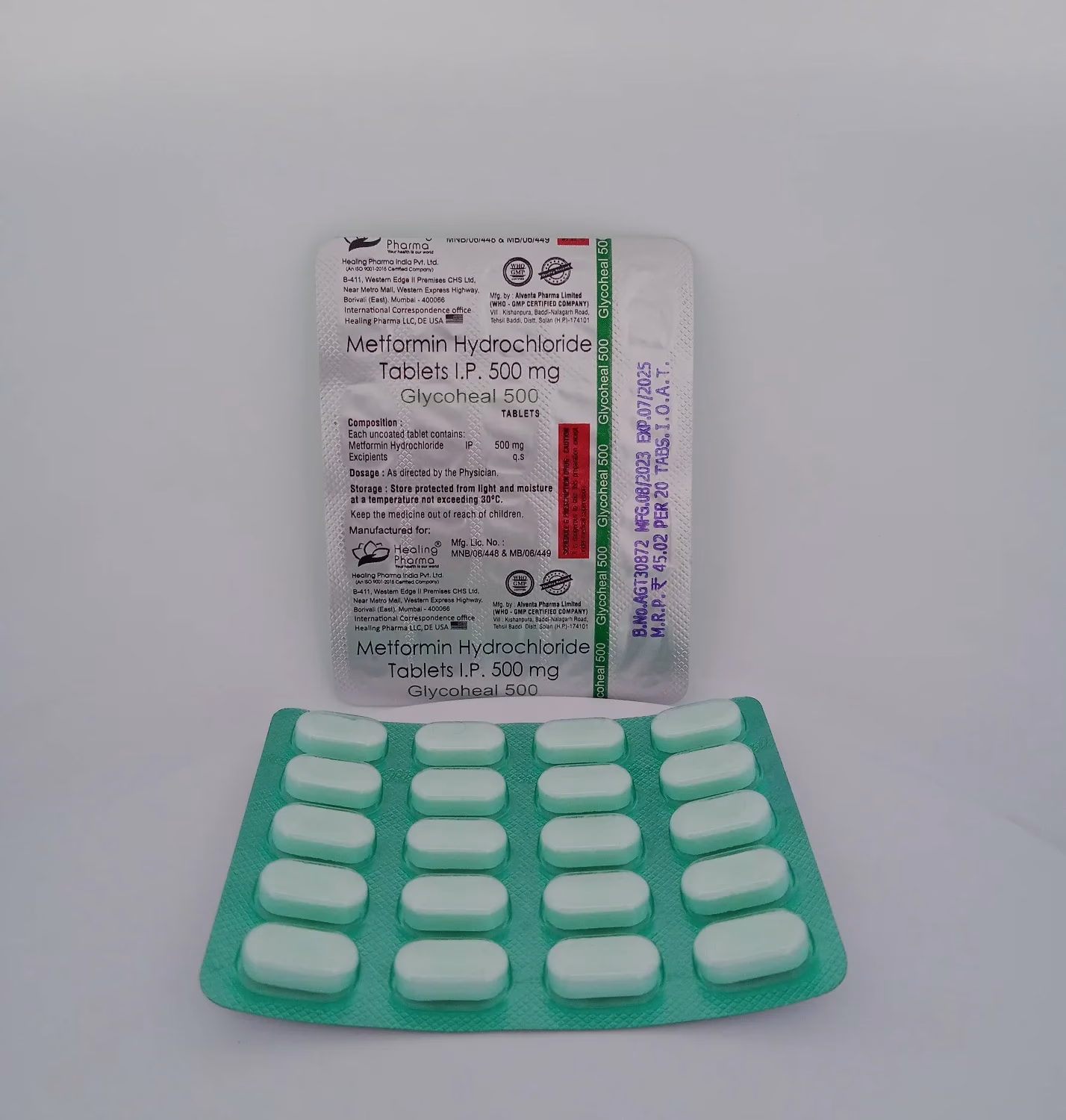GLYCOHEAL 500MG is a medication containing Metformin Hydrochloride 500mg, designed to manage diabetes effectively. It helps regulate blood sugar levels and improves insulin sensitivity for better glucose control. GLYCOHEAL 500MG, with Metformin Hydrochloride as its active ingredient, is a trusted medication for controlling diabetes. It works by decreasing the amount of glucose produced by the liver and enhancing insulin sensitivity in the body. This comprehensive approach helps in maintaining optimal blood sugar levels.