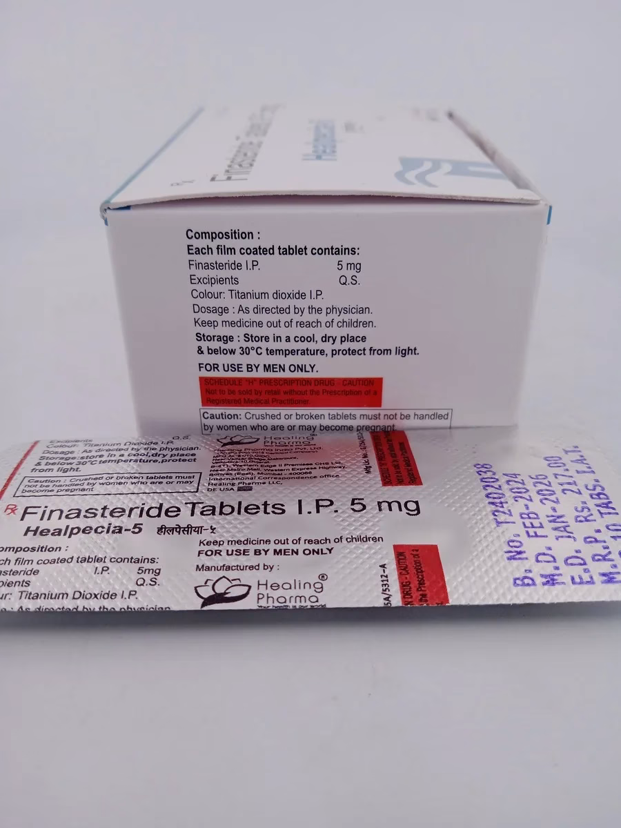 HEALPECIA 5 MG works by inhibiting the enzyme 5-alpha reductase, which converts testosterone into dihydrotestosterone (DHT). Elevated levels of DHT are known to cause hair follicles to shrink, leading to hair loss. By lowering DHT levels, HEALPECIA 5 MG helps to prevent follicle shrinkage and supports the regrowth of healthier, thicker hair.