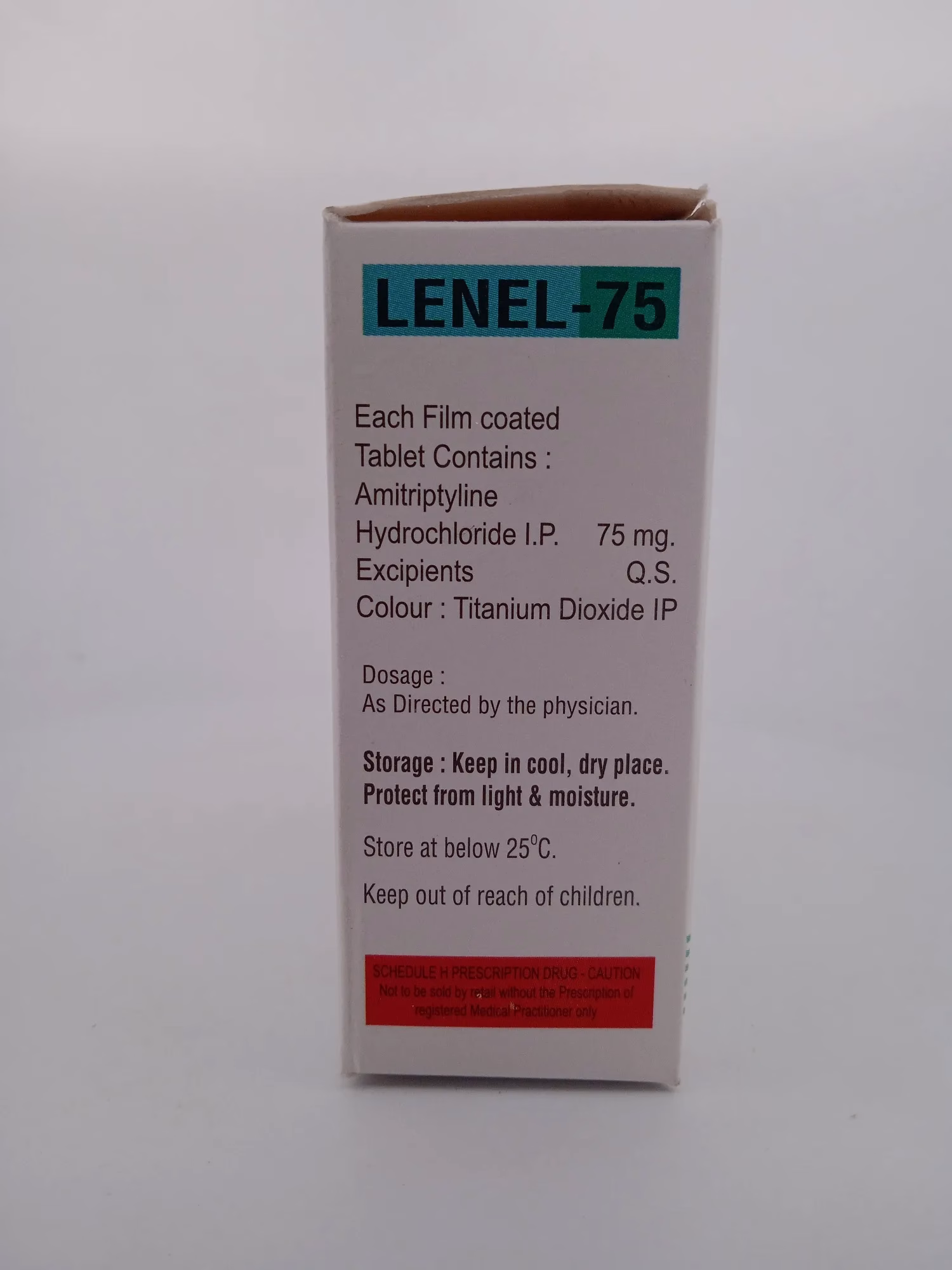 LENEL 75MG contains Amitriptyline, a tricyclic antidepressant that also serves as an analgesic. It works by increasing the levels of neurotransmitters in the brain, such as serotonin and norepinephrine, which regulate mood and pain perception. This dual action makes LENEL 75MG beneficial for treating conditions like depression, chronic pain, and sleep disorders. Its carefully formulated composition ensures optimal efficacy and safety.