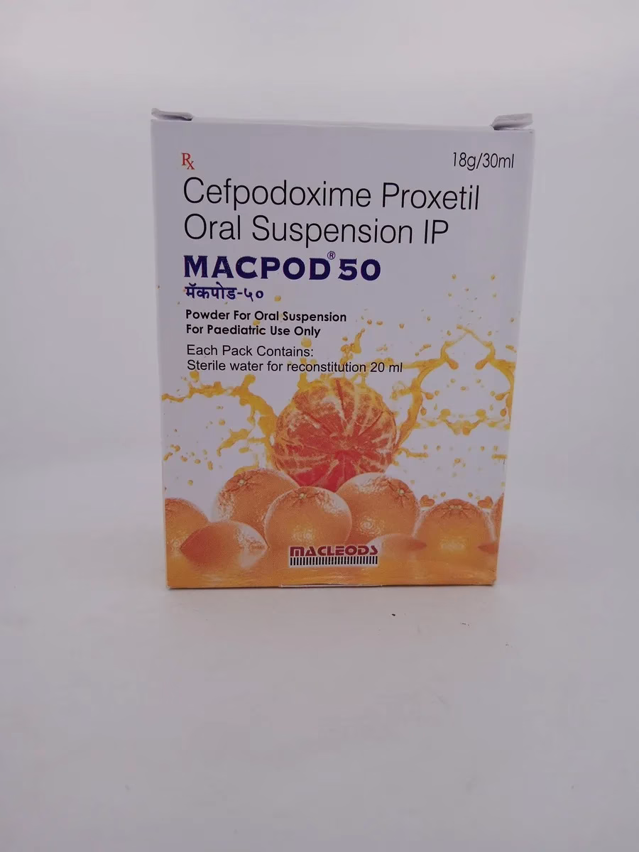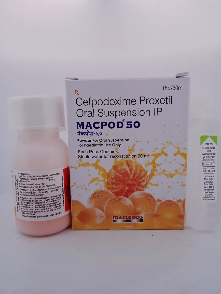 MACPOD 50 MG Oral Suspension is a pediatric formulation designed to address bacterial infections in children. It works by targeting and eliminating bacteria responsible for various infections. This oral suspension ensures accurate dosing and effective treatment, supporting a quick recovery and improving overall health.