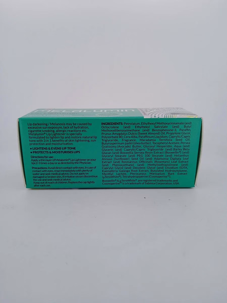 MELALUMIN LIP LIGHTENER works by targeting melanin production in the lips, which helps to lighten dark spots and even out lip color. Its formulation penetrates the skin to address pigmentation issues, resulting in a more uniform and natural tone.