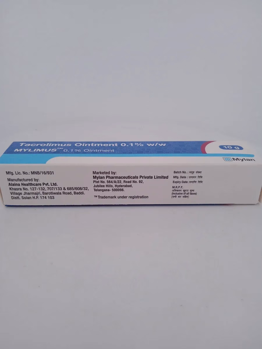 MYLIMUS 0.1% Ointment is specially formulated to treat inflammatory skin conditions such as eczema. It contains Tacrolimus, an immunosuppressant that reduces skin inflammation by blocking inflammatory chemicals in the body. MYLIMUS provides effective relief from itching, redness, and irritation, helping restore the skin’s natural barrier and preventing further flare-ups. It is suitable for long-term management of eczema and other inflammatory skin conditions, providing targeted relief without the side effects commonly associated with steroid-based creams.
