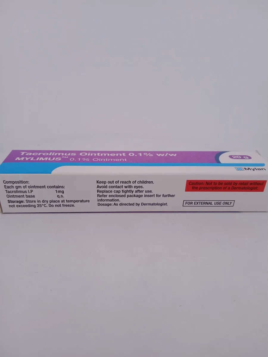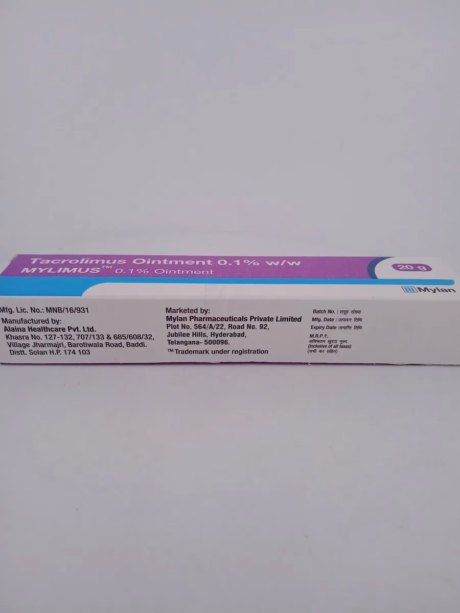MYLIMUS 0.1% Ointment is specially formulated to treat inflammatory skin conditions such as eczema. It contains Tacrolimus, an immunosuppressant that reduces skin inflammation by blocking inflammatory chemicals in the body. MYLIMUS provides effective relief from itching, redness, and irritation, helping restore the skin’s natural barrier and preventing further flare-ups. It is suitable for long-term management of eczema and other inflammatory skin conditions, providing targeted relief without the side effects commonly associated with steroid-based creams.