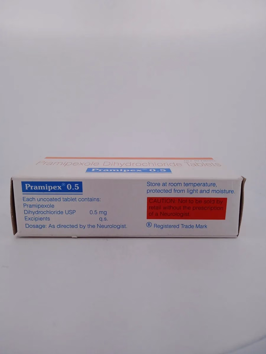 PRAMIPEX 0.5 MG contains pramipexole, a medication that acts on dopamine receptors in the brain. It’s prescribed to alleviate symptoms of Parkinson’s disease and restless legs syndrome (RLS). By mimicking dopamine, PRAMIPEX 0.5 MG reduces involuntary movements, tremors, and discomfort, helping patients achieve better motor control and a more comfortable daily experience.
