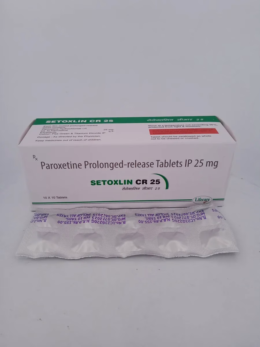SETOXLIN CR 25 MG contains Paroxetine, a selective serotonin reuptake inhibitor (SSRI) that is effective in treating depression, anxiety disorders, and panic disorders. This medication enhances serotonin levels in the brain, improving mood and alleviating anxiety. The controlled-release (CR) technology ensures a gradual release of the active ingredient, providing sustained therapeutic effects and promoting overall mental health.