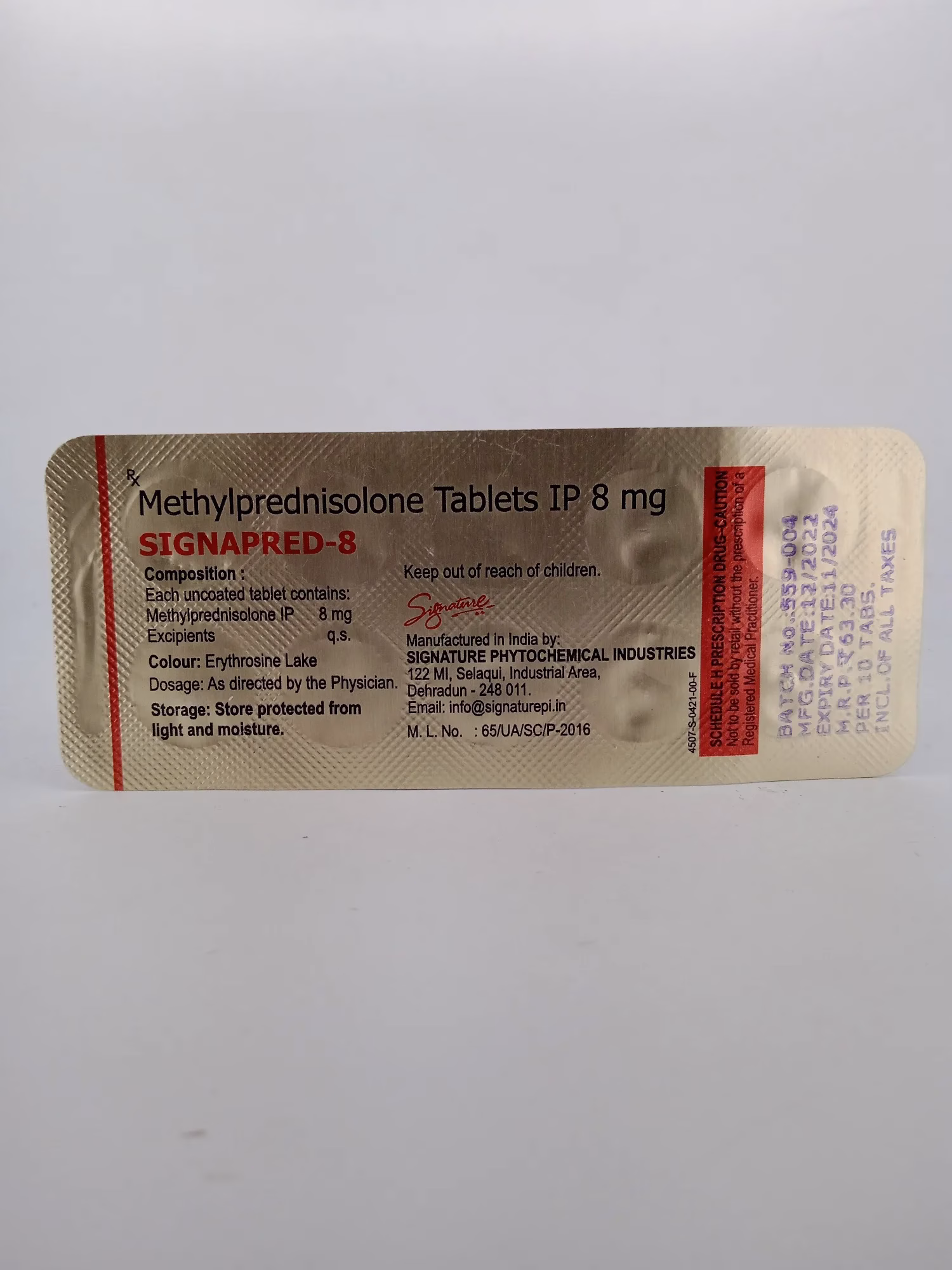 Mechanism of Action: Methylprednisolone, the active ingredient in SIGNAPRED 8mg, functions by inhibiting the production of inflammatory substances and suppressing the immune response. This mechanism helps reduce inflammation, swelling, and pain associated with various conditions.