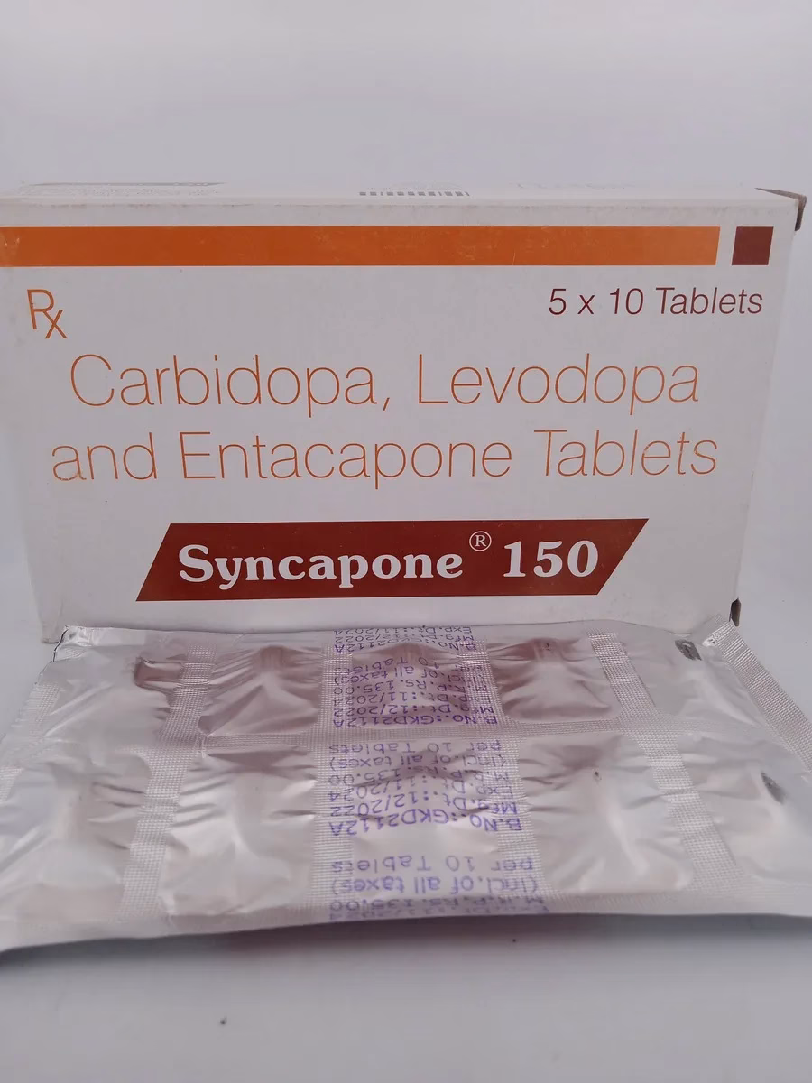 SYNCAPONE 150 works by combining levodopa and carbidopa. Levodopa is a precursor to dopamine, which replenishes the brain’s dopamine supply, addressing the deficiency seen in Parkinson’s disease. Carbidopa inhibits the conversion of levodopa into dopamine outside the brain, ensuring more levodopa reaches the brain and improves motor symptoms effectively.