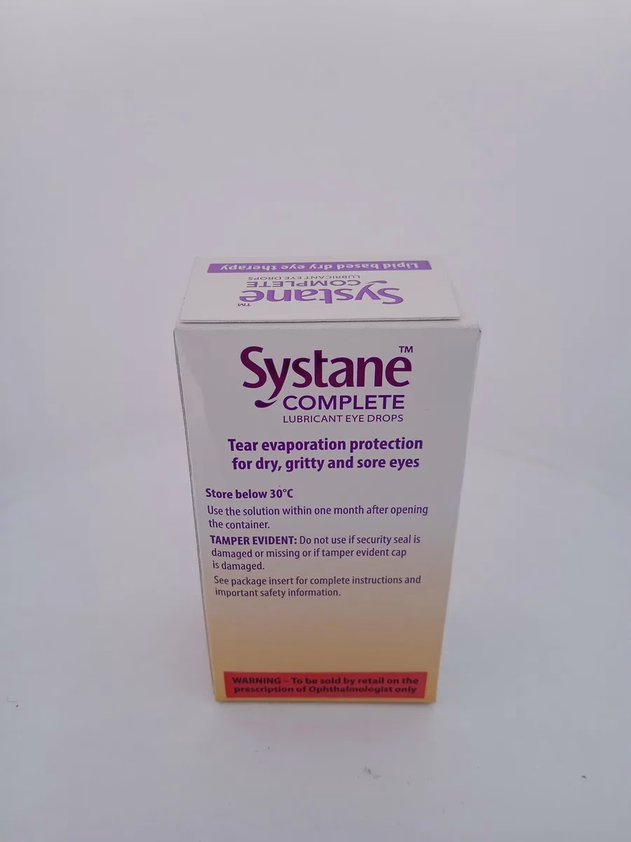SYSTANE COMPLETE EYE DROPS are formulated to deliver complete moisture and protection for dry, irritated eyes. Featuring a unique blend of ingredients, these drops provide immediate and long-lasting hydration, mimicking natural tears to soothe and protect the ocular surface. They help to alleviate discomfort caused by environmental factors, prolonged screen use, or eye conditions. SYSTANE COMPLETE EYE DROPS are suitable for daily use, offering versatile relief and promoting overall eye comfort.
