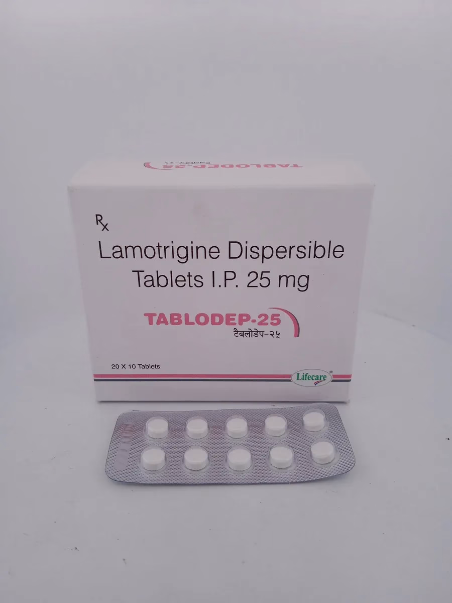 TABLODEP 25 MG contains lamotrigine, an anticonvulsant that stabilizes electrical activity in the brain. It is primarily used for managing epilepsy, reducing the frequency of seizures, and for the treatment of bipolar disorder by stabilizing mood fluctuations. By addressing both conditions, TABLODEP 25 MG contributes to a better quality of life.