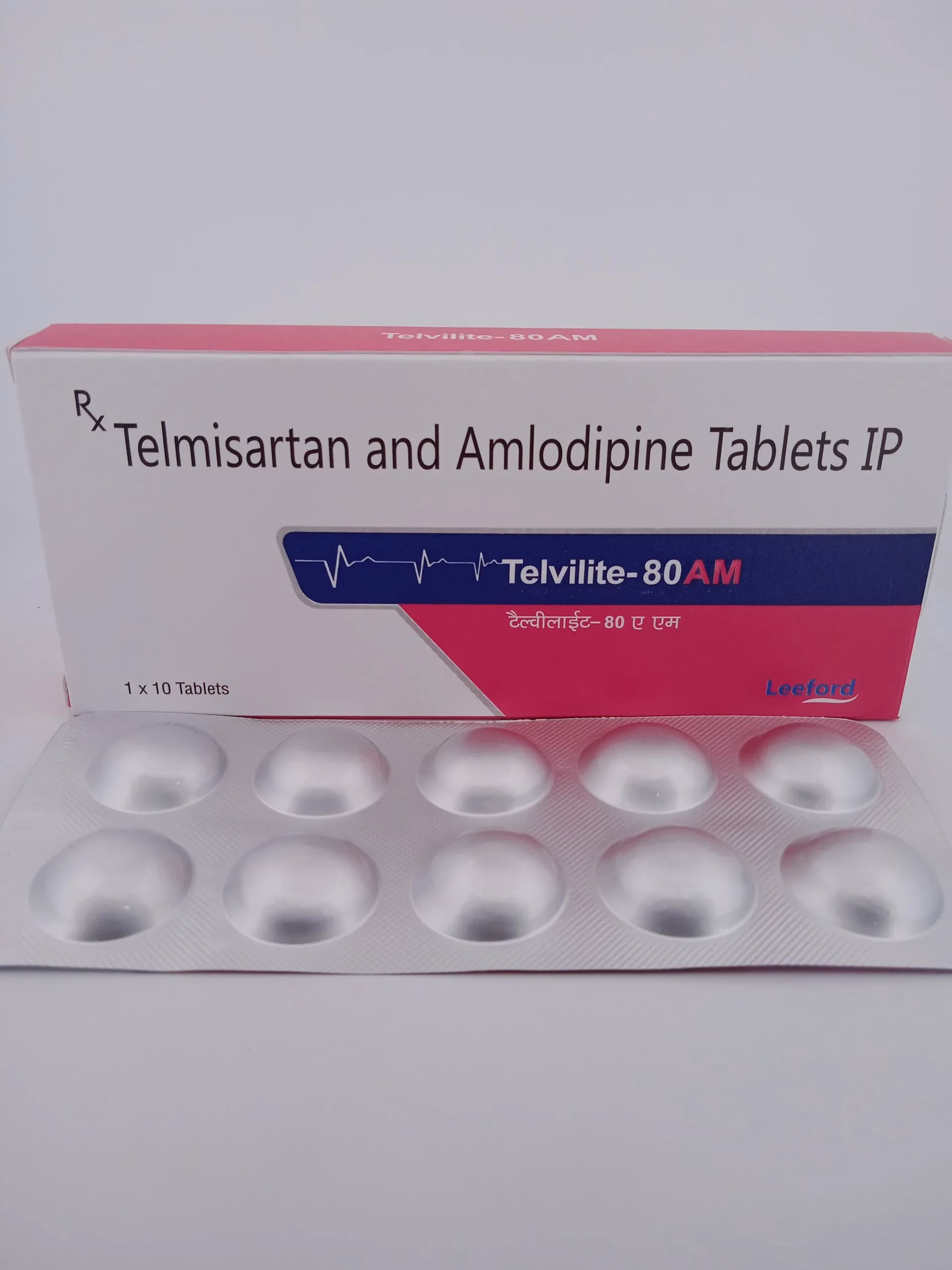 TELVILITE-80 AM contains a combination of Telmisartan and Amlodipine, two powerful agents for managing hypertension and cardiovascular health. Telmisartan is an angiotensin II receptor blocker (ARB) that helps relax blood vessels and lower blood pressure. Amlodipine is a calcium channel blocker that prevents the contraction of blood vessel muscles, further aiding in the reduction of blood pressure and improvement of heart function. Together, they provide a comprehensive approach to managing hypertension and supporting heart health.