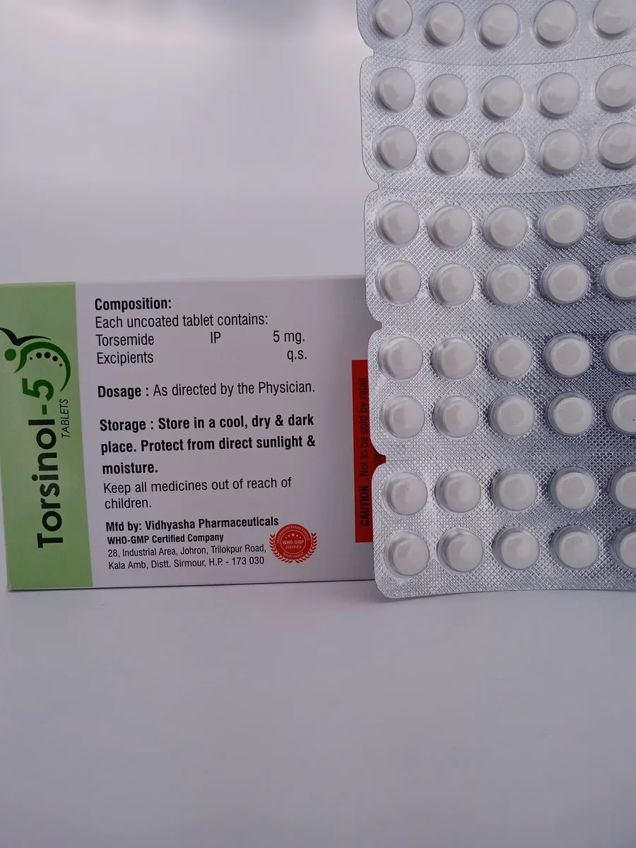 TORSINOL 5 MG (TORSEMIDE 5MG) tablets are potent diuretics used to treat edema and heart failure. They help reduce fluid retention and improve symptoms for better quality of life.