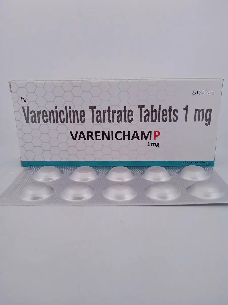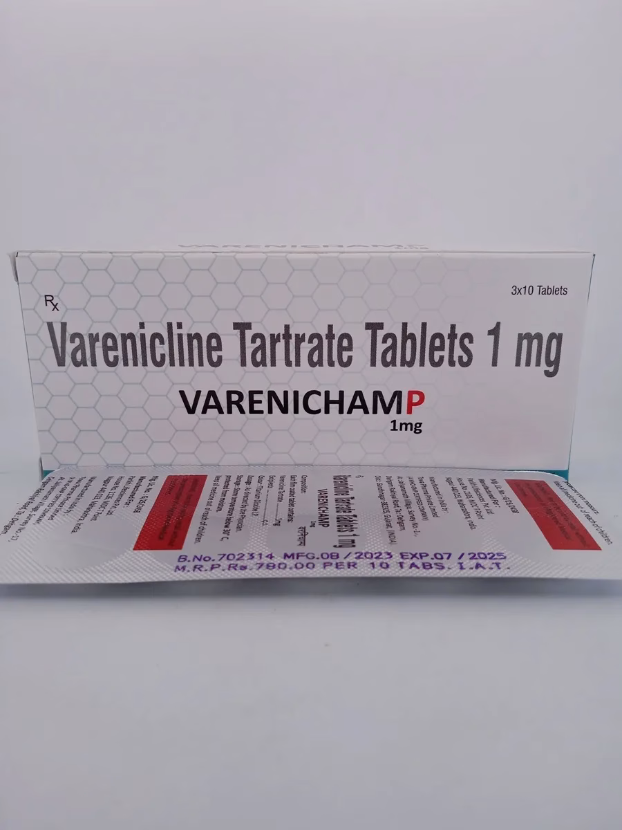 Varenichamp 1mg, containing Varenicline Tartrate 1mg, is a powerful aid for smoking cessation. It helps reduce cravings and withdrawal symptoms, paving the way for a smoke-free life. Take the first step towards a healthier you with Varenichamp 1mg.