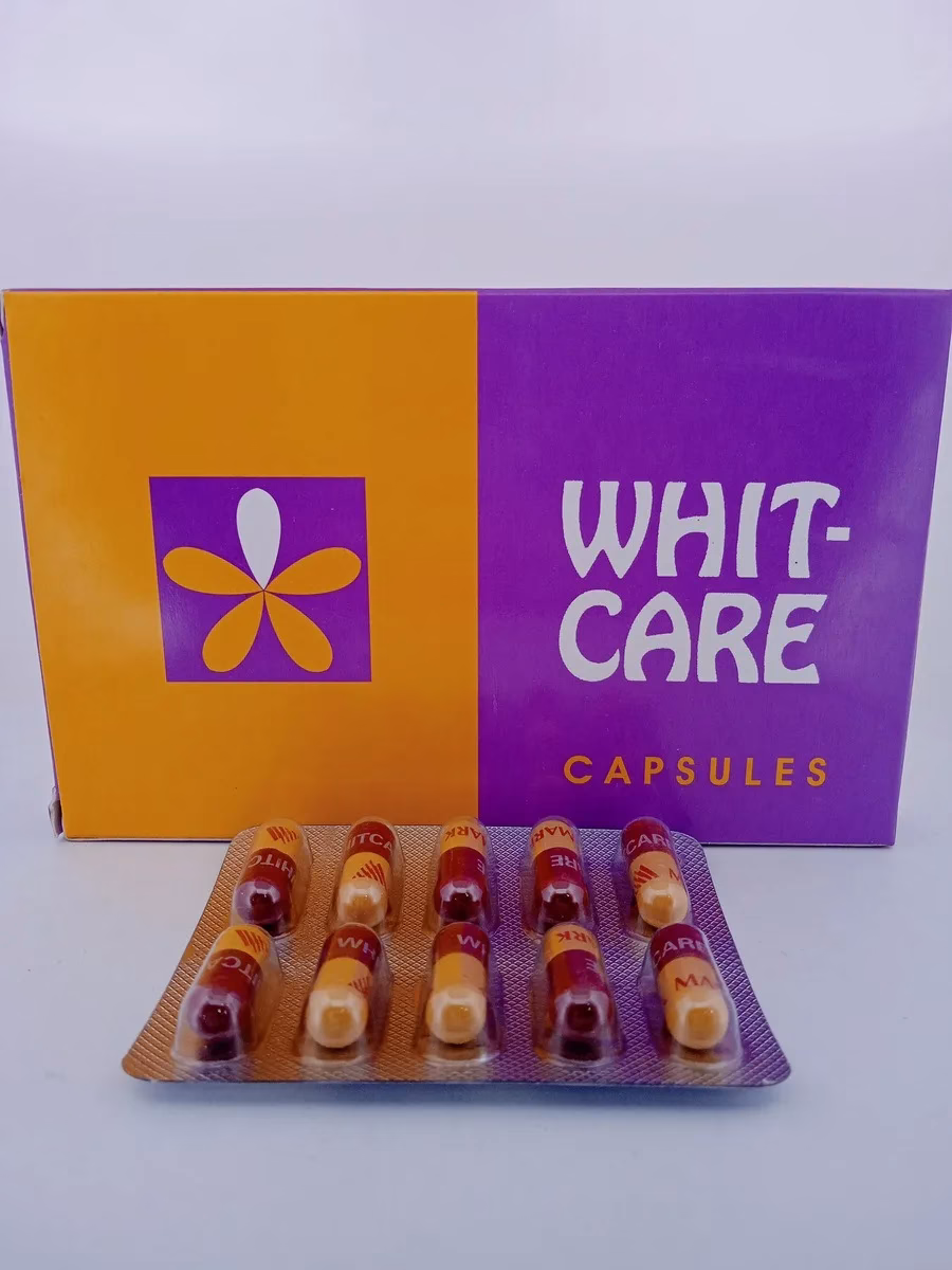 WHIT-CARE CAPSULES are a comprehensive supplement designed to address a range of conditions, including vitiligo, skin discoloration, and high cholesterol. With a unique blend of natural ingredients, they support skin health, manage fluid retention, and improve overall well-being.