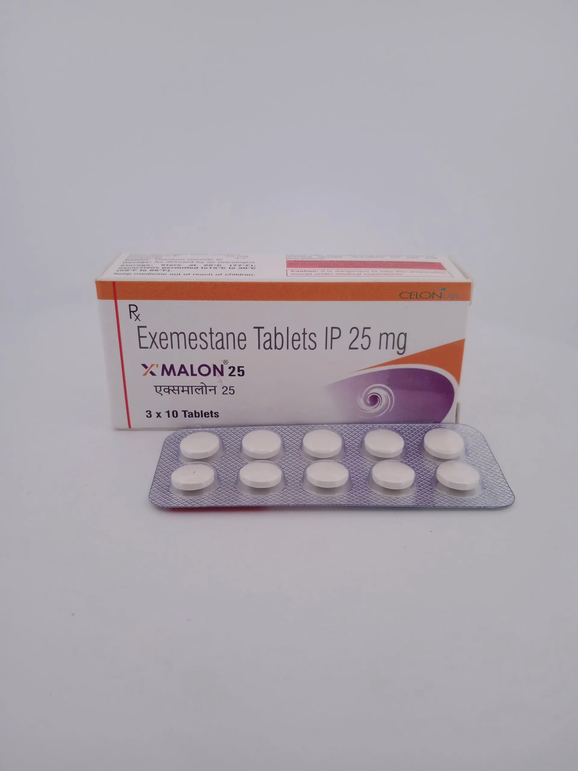 XMALON 25 MG, containing Exemestane, is an aromatase inhibitor used to treat hormone-receptor-positive breast cancer in postmenopausal women. It works by lowering estrogen levels in the body, effectively slowing the growth of breast cancer cells and reducing the risk of recurrence.